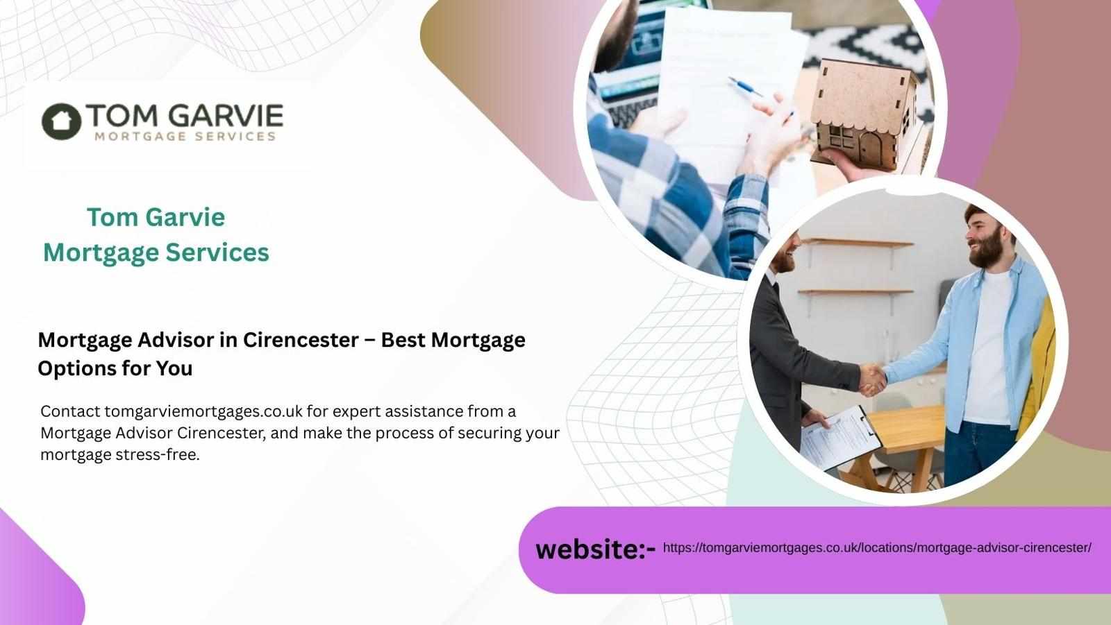 Contact tomgarviemortgages.co.uk for expert assistance from a Mortgage Advisor Cirencester, and make the process of securing your mortgage stress-free.